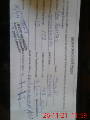 | Certified that this School was Inspected by the Undersigned MEA/DMO Today and the Information Stated Above is as Per Record. | |||||