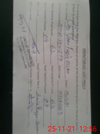 | EMIS Code: 37240213 | Name of School: GPS CHAH FAQIR ULLAHA | |||