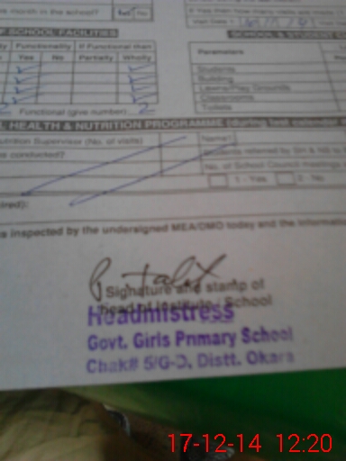 | Certified that this School was Inspected by the Undersigned MEA/DMO Today and the Information Stated Above is as Per Record. | |||||