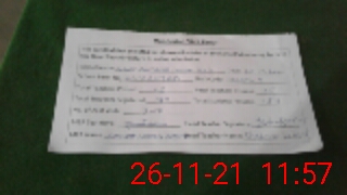 | Monitoring Date: 26-11-2021 | Start Time: 26-11-2021 11:11 AM | End Time: 26-11-2021 11:58 AM | Name of MEA: Ak**** Hu**** Bh**** | |
