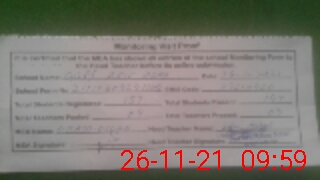| School Visited by School Health & Nutrition Supervisor (No. of Visits) | 1 | Name1: | NIGHAT AFROZE | Name2: | Nil |