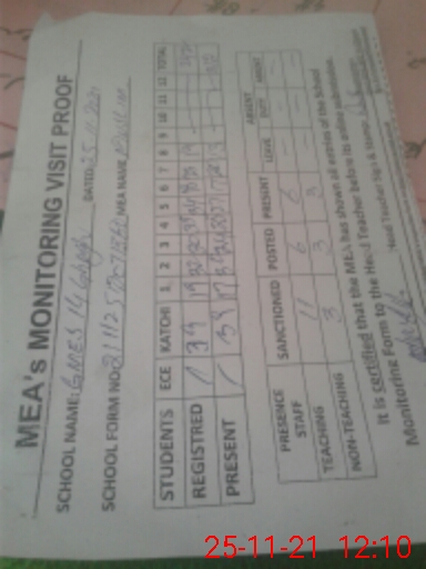 | Certified that this School was Inspected by the Undersigned MEA/DMO Today and the Information Stated Above is as Per Record. | |||||