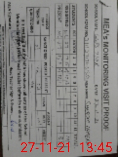| Monitoring Date: 27-11-2021 | Start Time: 27-11-2021 12:44 PM | End Time: 27-11-2021 01:47 PM | Name of MEA: Sh**** Na**** | |