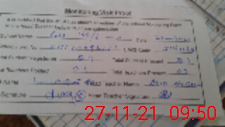 | Monitoring Date: 27-11-2021 | Start Time: 27-11-2021 09:28 AM | End Time: 27-11-2021 09:50 AM | Name of MEA: Li**** Al**** BN**** 11 | |
