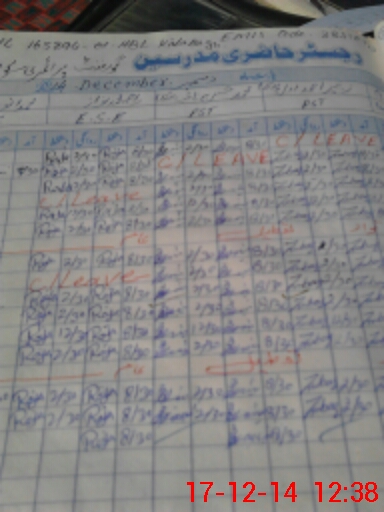 | CNIC | Full Name | Designation | R/C | Absence During Last Calender Month |