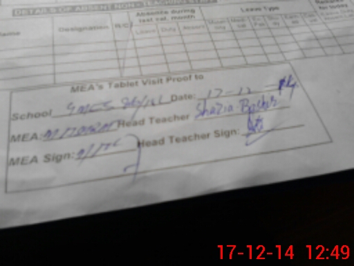 | Attendance Register | Head Teacher | MEA with School | Visit Proof |