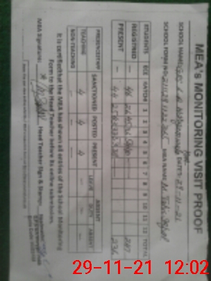 | Monitoring Date: 29-11-2021 | Start Time: 29-11-2021 11:22 AM | End Time: 29-11-2021 12:08 PM | Name of MEA: M.Ta**** Iq**** (S**** | |