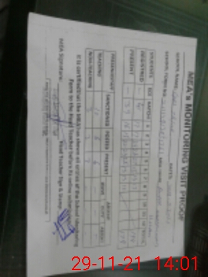 | Monitoring Date: 29-11-2021 | Start Time: 29-11-2021 12:41 PM | End Time: 29-11-2021 02:21 PM | Name of MEA: Am**** Mu**** Kh**** | |