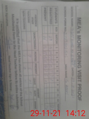 | Attendance Register | Head Teacher | MEA with School | Visit Proof |