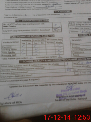 | Attendance Register | Head Teacher | MEA with School | Visit Proof |