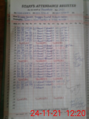 | CNIC | Full Name | Designation | R/C | Absence During Last Calender Month |