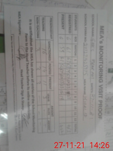 | Attendance Register | Head Teacher | MEA with School | Visit Proof |