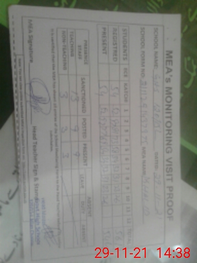 | Monitoring Date: 29-11-2021 | Start Time: 29-11-2021 01:15 PM | End Time: 29-11-2021 02:49 PM | Name of MEA: Kh**** Me**** | |