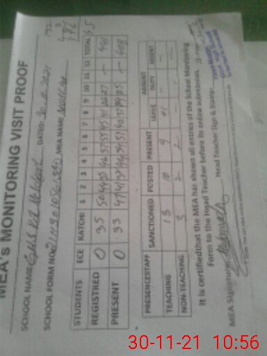 | Attendance Register | Head Teacher | MEA with School | Visit Proof |