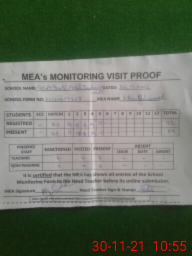 | Certified that this School was Inspected by the Undersigned MEA/DMO Today and the Information Stated Above is as Per Record. | |||||