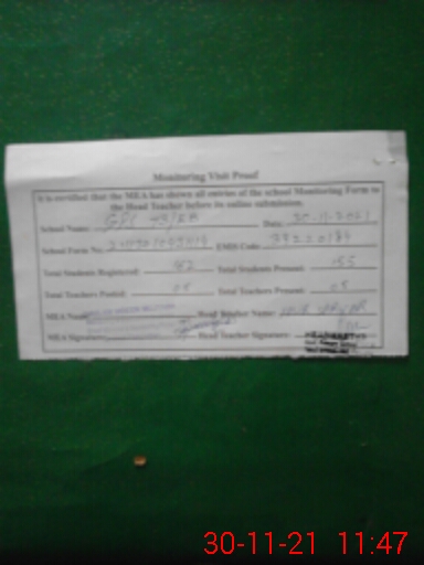| Certified that this School was Inspected by the Undersigned MEA/DMO Today and the Information Stated Above is as Per Record. | |||||