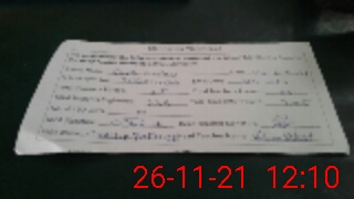 | Monitoring Date: 26-11-2021 | Start Time: 26-11-2021 10:52 AM | End Time: 26-11-2021 12:11 PM | Name of MEA: Sh**** Ra**** | |