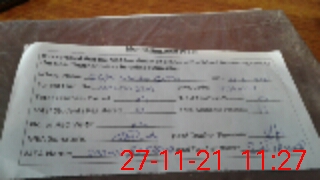 | Monitoring Date: 27-11-2021 | Start Time: 27-11-2021 10:54 AM | End Time: 27-11-2021 11:59 AM | Name of MEA: Sh**** Ra**** | |