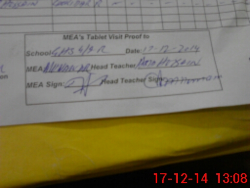 | Attendance Register | Head Teacher | MEA with School | Visit Proof |