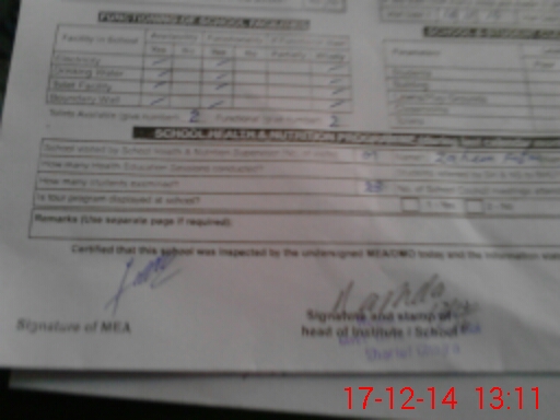 | Certified that this School was Inspected by the Undersigned MEA/DMO Today and the Information Stated Above is as Per Record. | |||||