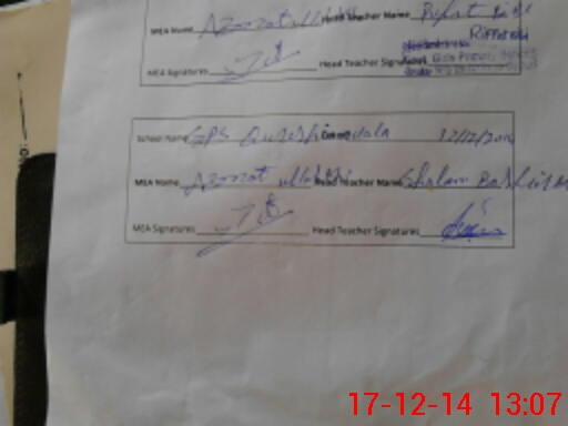 | Attendance Register | Head Teacher | MEA with School | Visit Proof |