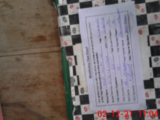| Total no. of Classrooms: 2 No. of Classrooms Used for Teaching: 2 No. of Classrooms Storing Old Furniture, FTBs, etc: 0Comments if Any: 0 |