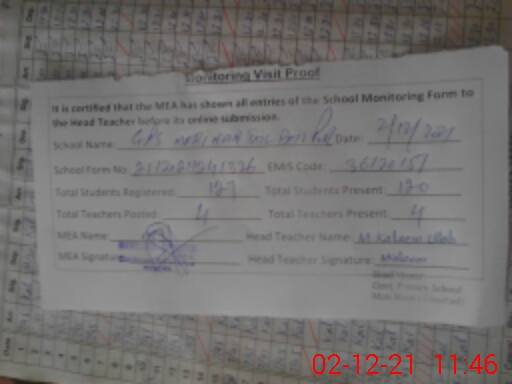 | EMIS Code: 36120151 | Name of School: GPS MARI NOON TAIL FAIZ PUR | |||
