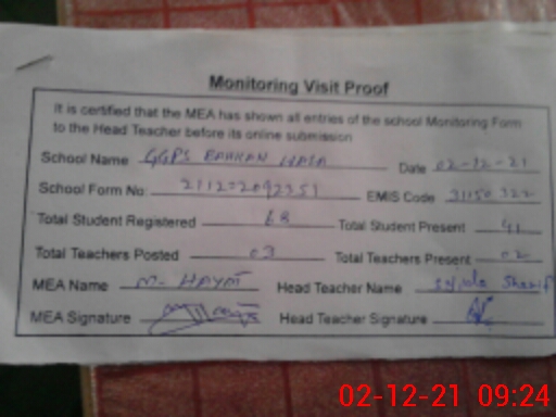| EMIS Code: 31150322 | Name of School: GGPS BEHKAN WALA | |||
