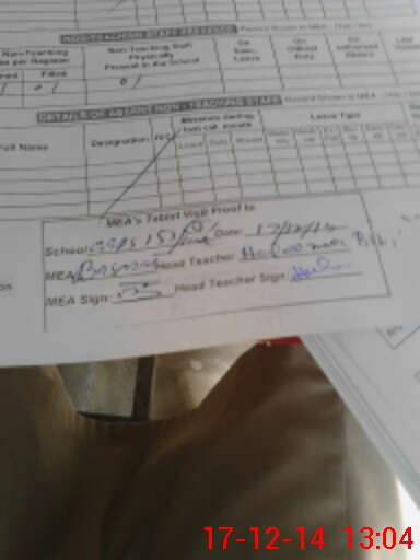 | Attendance Register | Head Teacher | MEA with School | Visit Proof |
