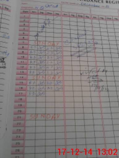 | CNIC | Full Name | Designation | R/C | Absence During Last Calender Month |