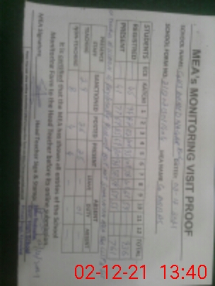 | Certified that this School was Inspected by the Undersigned MEA/DMO Today and the Information Stated Above is as Per Record. | |||||