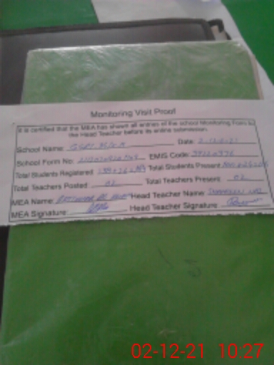 | Attendance Register | Head Teacher | MEA with School | Visit Proof |