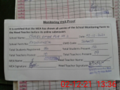 | Attendance Register | Head Teacher | MEA with School | Visit Proof |