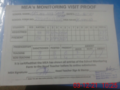 | Certified that this School was Inspected by the Undersigned MEA/DMO Today and the Information Stated Above is as Per Record. | |||||