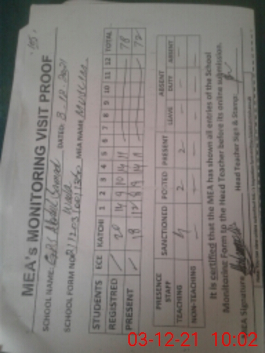 | Attendance Register | Head Teacher | MEA with School | Visit Proof |