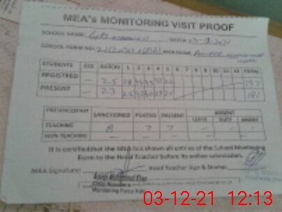 | Attendance Register | Head Teacher | MEA with School | Visit Proof |