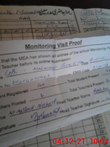 | Attendance Register | Head Teacher | MEA with School | Visit Proof |