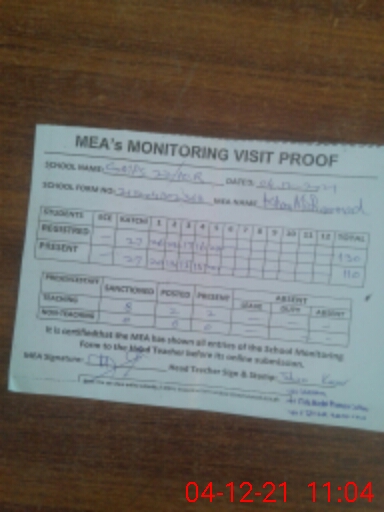 | Attendance Register | Head Teacher | MEA with School | Visit Proof |