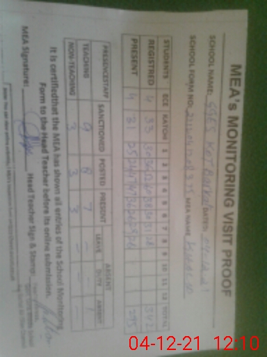 | Attendance Register | Head Teacher | MEA with School | Visit Proof |