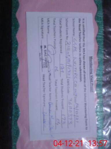 | Attendance Register | Head Teacher | MEA with School | Visit Proof |