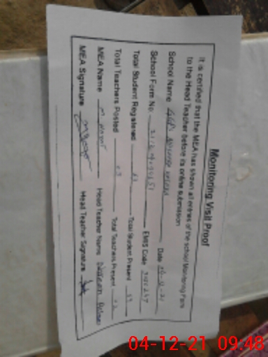 | Certified that this School was Inspected by the Undersigned MEA/DMO Today and the Information Stated Above is as Per Record. | |||||
