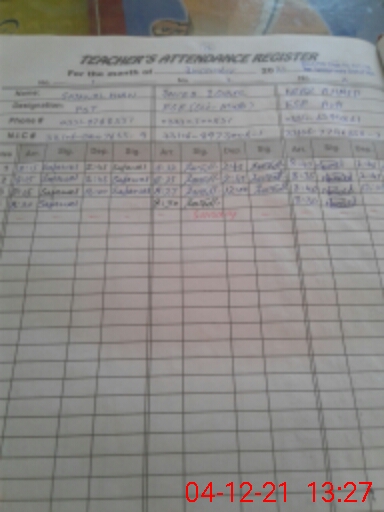 | Name: SA**** KH**** Designation: (School Headmaster's/Headmistress's) PST Phone/Cell Number: 03**** |