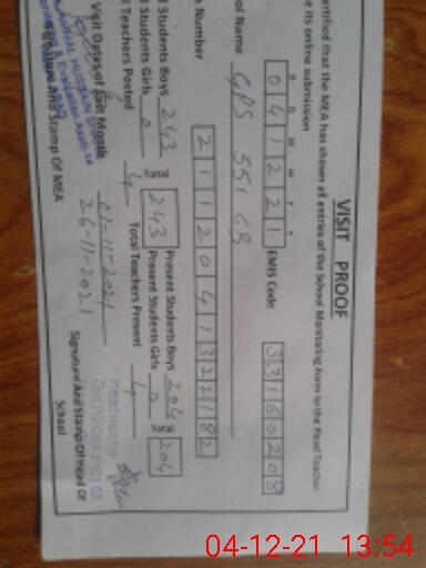 | Attendance Register | Head Teacher | MEA with School | Visit Proof |