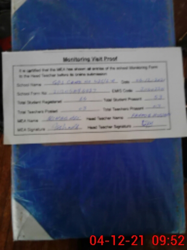 | Attendance Register | Head Teacher | MEA with School | Visit Proof |