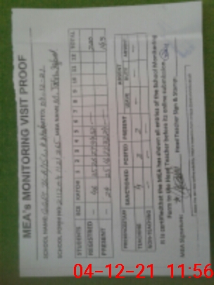| Attendance Register | Head Teacher | MEA with School | Visit Proof |