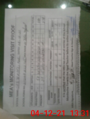 | Certified that this School was Inspected by the Undersigned MEA/DMO Today and the Information Stated Above is as Per Record. | |||||