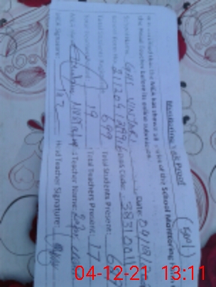 | Attendance Register | Head Teacher | MEA with School | Visit Proof |