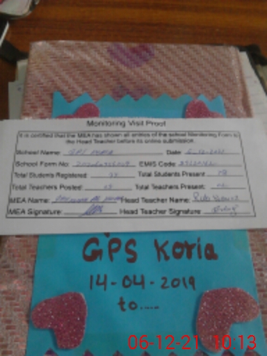 | EMIS Code: 39220162 | Name of School: GPS KORIA | |||
