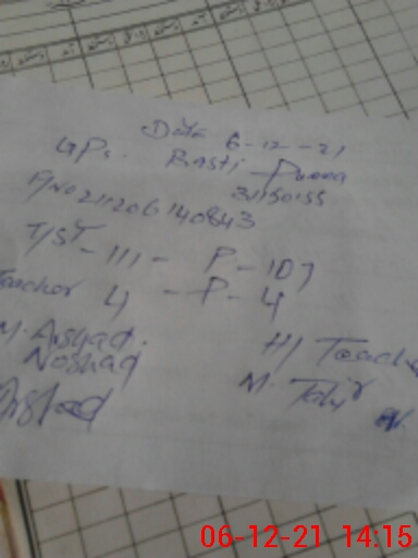 | Name: MTa**** Designation: (School Headmaster's/Headmistress's) PST Phone/Cell Number: 03**** |