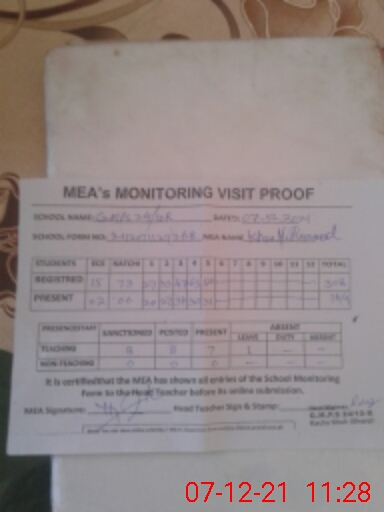 | Certified that this School was Inspected by the Undersigned MEA/DMO Today and the Information Stated Above is as Per Record. | |||||